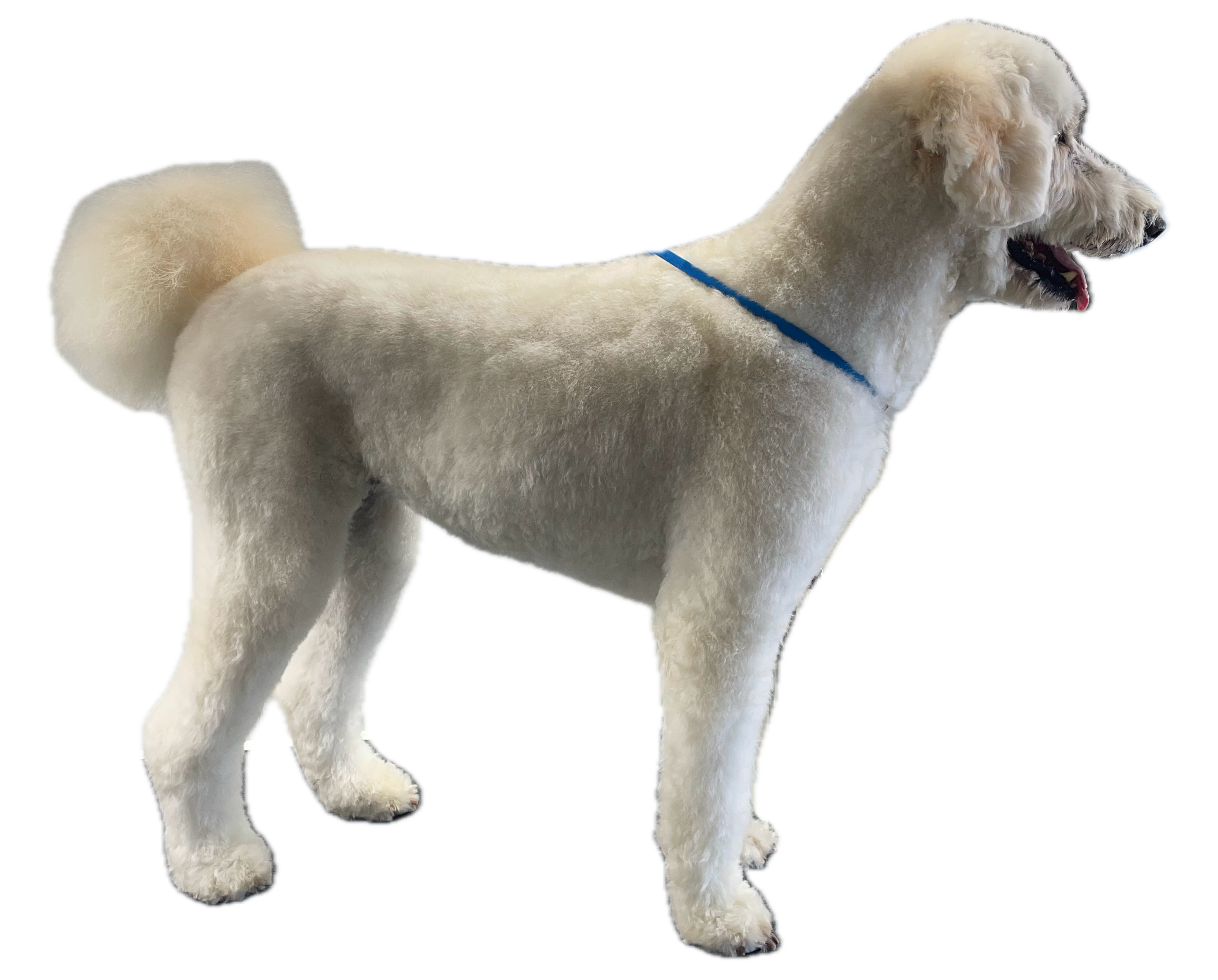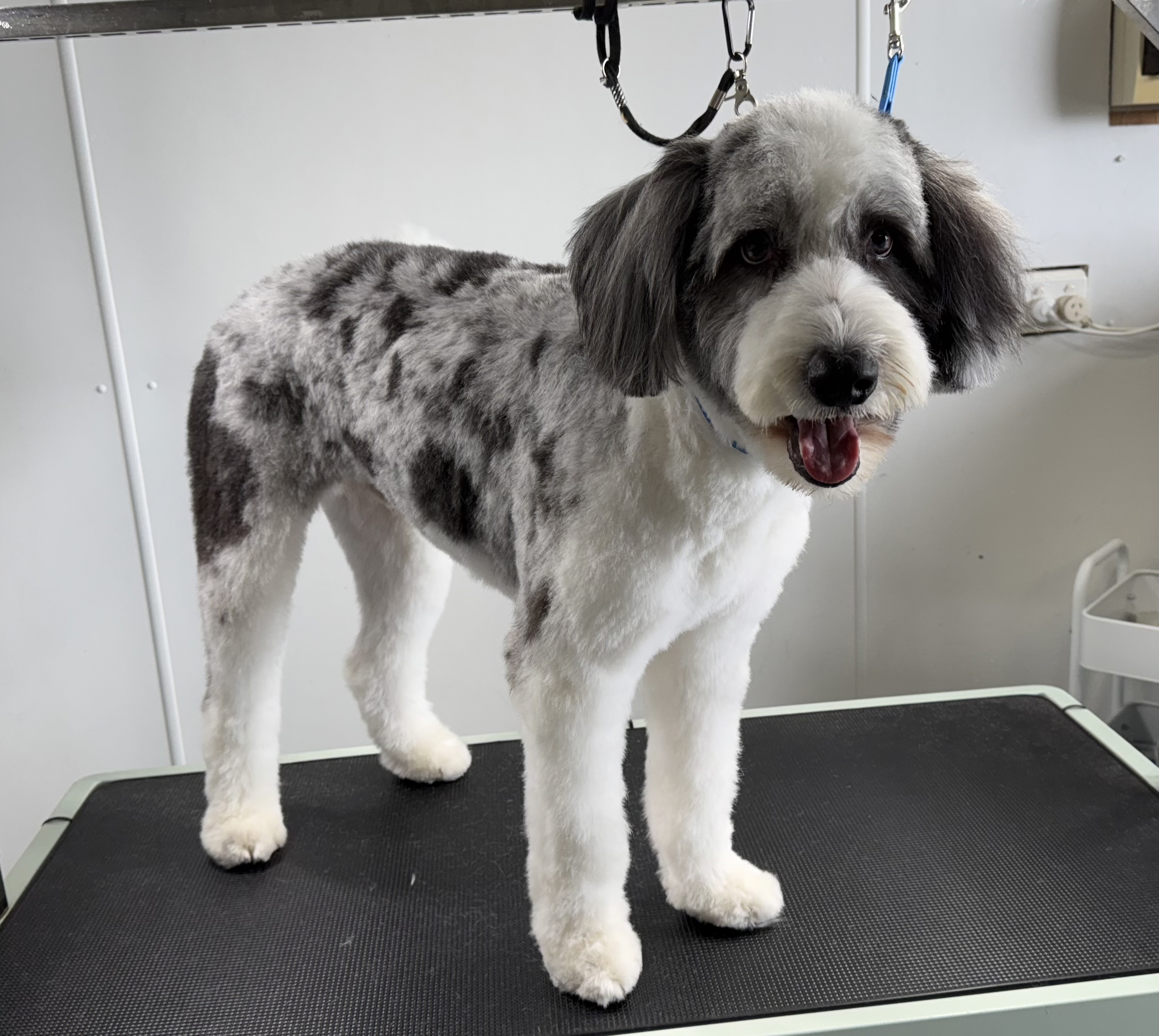 All grooms include double shampoo, conditioner, blow dry, nail trim and ear clean. Double coated grooms include full deshed brush and tidy of feathering. Short double coated grooms include deshed brush. Coated breeds such as poodle mixes include body clip and scissored head.